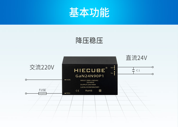 品牌:HIECUBE/高能立方 型號:GaN24N90P1 隔離耐壓:3000VAC 輸出電壓精度:±1% 電源類別:AC-DC電源模塊 模塊質保年限:三年