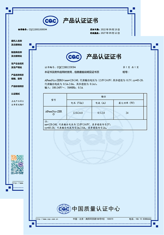 熱烈祝賀我司AP120N20-Zero、AP150N16-Zero、AP200N12-Zero、AP240N10-Zero等型號(hào)AC-DC電源模塊順利通過CQC認(rèn)證,提高了產(chǎn)品競(jìng)爭(zhēng)力和企業(yè)形象,增強(qiáng)客戶對(duì)產(chǎn)品的信心。